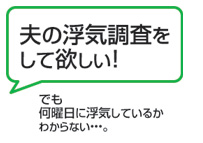 対象者の行動予定は把握しているが、月曜から日曜まで何時浮気をしているか確証がつかめない方のためのパックです。「20時間」という時間数をパックで購入して頂き、ご指定の曜日、時間帯にご指定の時間単位で調査を行います。通常の調査形態よりもリーズナブルに、しかも合理的に調査を行い不貞の証拠を掴むことが出来ます。例えば対象者の通勤時間帯のみ調査を行いたい方。他社で問い合わせたが1日2時間の調査でも1日計算なので8時間分の料金が発生する、と言われてしまった方にオススメです。(最低単位:1日3時間〜)